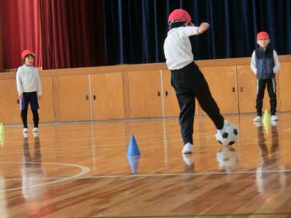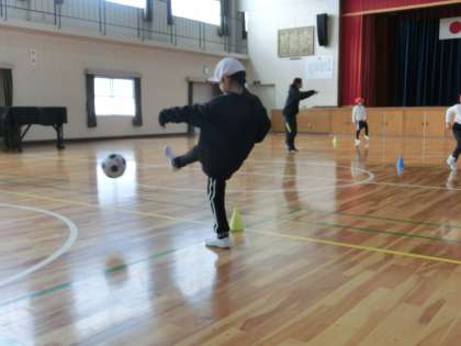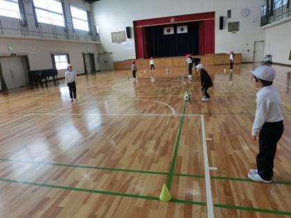 週末になりました。早いもので今日で1月も終わります。子どもたちは元気に過ごしています。1・2年生の体育の様子です。今日は体育館でサッカーのゲームです。ねらったところにボールをけることができず苦戦していました。