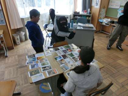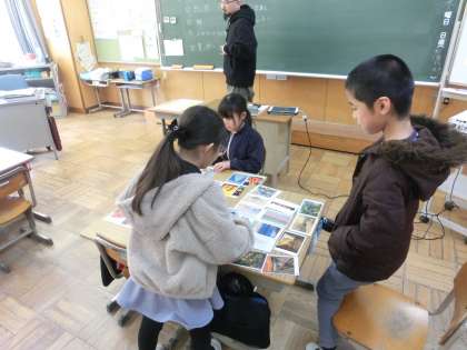 3年生の図工は鑑賞の時間です。キーワードをてがかりにキーワードに近い写真や絵のカードをとっていきます。みんなどんな風に見えているのかな。