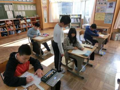 連休が明け、子どもたちの元気な声が聞こえてきました。朝各教室を回っていると4年生の児童が国語の学習で各学年の教室を回ってアンケートへの協力のお願いをしていました。