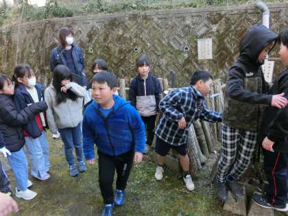 3年生では、先日、森林組合や地域ボランティアの協力を得て、しいたけの菌打ち作業をしました。先回の活動の際に用意した原木が余ったため、本日、追加の菌打ち作業をしました。3年生の原木の隣には、ちょうど1年前に菌打ちをした4年生のしいたけが出てきていました。1年かけてゆっくり成長するのですね。