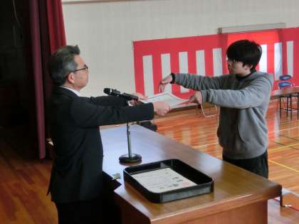 いよいよ卒業式が明日になりました。今日は、全校揃っての最後の全校朝会を行いました。朝会の前に前に6年生への表彰伝達をしました。過日行われた作品展の入賞の伝達です。おめでとうございます。続いて校長先生からお話をしました。