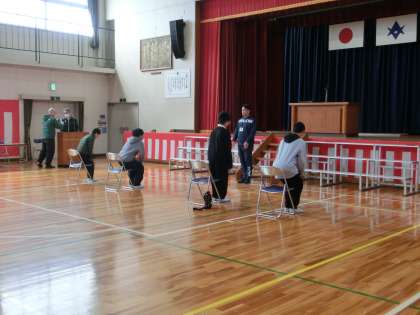 全校朝会に続いて最後の卒業式の練習を行いました。昨日の予行練習の反省を生かし、最終確認です。