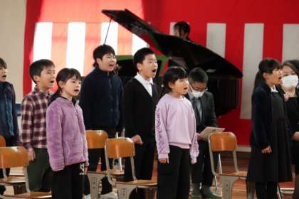 本日、幸海小学校第78回卒業式が行われました。昨晩から今朝にかけて大荒れの天気で心配されました。天気は回復方向かかと思いましたが、開始直前に停電というハプニングが起き、しばらく開始を遅らせましたが、復旧のめどがなく少し遅れて開始しました。マイクは使用できませんでしたが、生の声と乾電池を使用してのCDラジカセのBGMに合わせて式を行いました。照明もつかない、マイクもないまれにみる卒業式でしたが、卒業生、在校生のすばらしい歌声につつまれ、感動的な卒業式になりました。