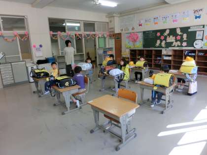 1年生は、担任の先生から小学校での生活について一つ一つ丁寧に説明を聞いていました。