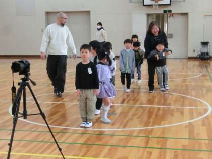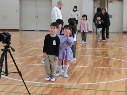 2日目、今日は、学級写真の撮影です。みんな並んで体育館へ集合です。