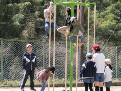 さわやかな天気になり、なかよしタイムの運動場は子どもたちの元気な声がきこえてきました。入学した1年生も上級生に交じってサッカーや遊具など思い思いに走り回っていました。小学校生活にも少しずつ慣れてきたようです。