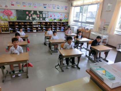 今朝も1年生の教室を訪問すると先生の話を一生懸命に聴く姿が見られました。日々成長ししていますね。