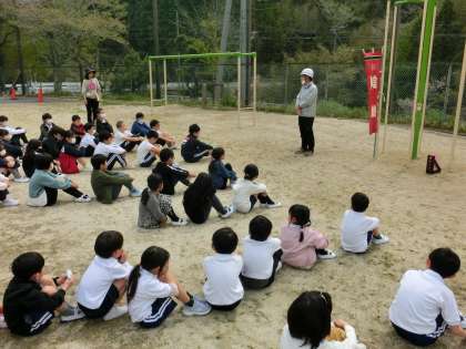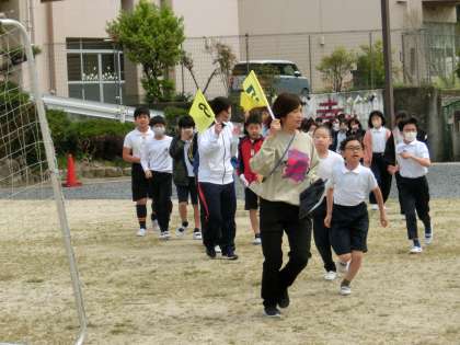 今年度初めての避難訓練を実施しました。職員室前の理科室から出火という想定で各教室からの避難経路の確認しながら運動場南側へ避難しました。小学校で初めての訓練に参加する1年生は2階の教室からの避難でしたが、誰一人声を出すことなく落ち着いて避難することができました。全校児童で誰一人声を出すことなく大変すばらしい訓練ができました。