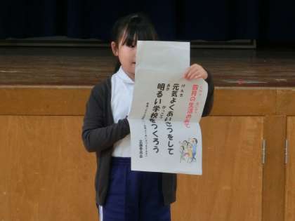 今日は、委員会活動が始まり初めての朝会です。はじめに各委員会の委員長の紹介と今年度の活動について連絡がありました。委員会の皆さんよろしくお願いします。