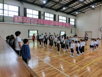 週末の授業参観並びに学校説明会には多数のご出席ありがとうございました。週が明け11週間がスタートしました。休み明けは児童朝会からのスタートです。