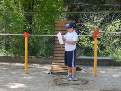 4年生の理科は、晴れた日の気温調べです。今日1日1時間ごとに運動場に出て気温を計っています。快晴の天気です。どんな変化が出るかな。