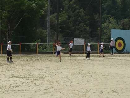 体育の授業で、体力テストに向けて練習をするようになってきました。3・4年生の体育を見ていると、ボールあてゲームをした後に、ソフトボール投げの練習をしていました。自分で投げる目標を決めて、そこに向かって力強く投げていました。だんだん投げる力がついてきているなと感じます。