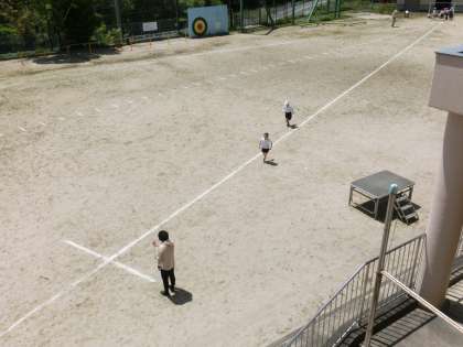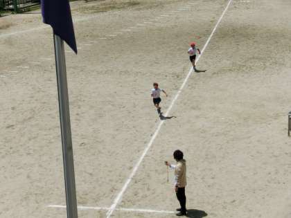 3・4年生の体育は、体力テストを行っています。今日は、青空の元50メートルのタイムを計っています。さあ、昨年度よりタイムはよくなったかな。