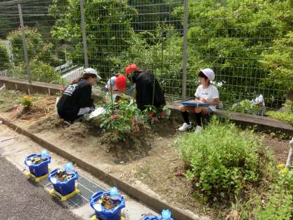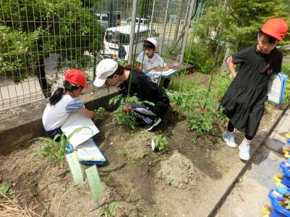 2年生は、生活科で育てている野菜の観察です。植える様子が紹介できませんでしたがすくすく育っているようです。変化に気づいたかな。