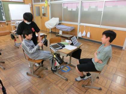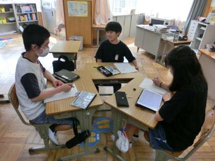 6年生は、グループに分かれて話し合いをしているようです。何だか楽しそうなことを計画しているようです。