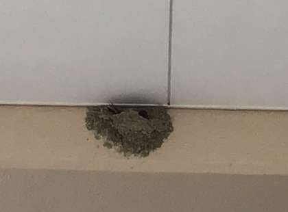 校舎の高い所にツバメの巣がたくさんあります。今年もツバメがやってきて、子育てを始めました。下校の時に集合するピロティの天井にも巣があり、一羽のツバメがずっといて、卵を温めているようです。下校時には、子供たちの様子が気になるようで、きょろきょろしながら見つめていました。