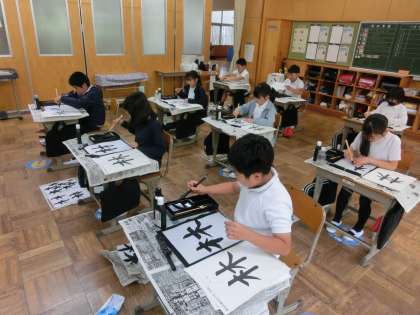 4年生は、書写の時間です。時間内に限られた枚数を書き上げるためにみなさん集中して取り組んでいるようです。