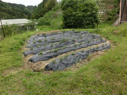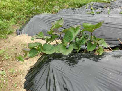 3日ぶりのイモの苗の様子です。ツルが横へ伸びてきました。