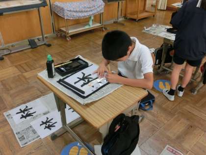 授業の後半に4年生の教室を訪れると書写の時間でした。すでに片付けの時間になっていましたが、最後の最後まで自分の名前を書いている子がいました。上手に書けたようです。