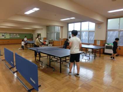 今朝は、朝からあいにくの雨になりました。子どもたちは、図書館や卓球でなかよしタイムを過ごしています。チャイムと同時に図書館へ集まってくる1年生や担任の先生と対戦している児童の様子です。
