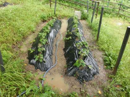 雨の中のイモ畑の様子です。雨の時はどのような様子か気になり見に行くと予想していた以上に畝の周りに水が溜まっているのが確認できました。昨年度収穫したイモの状態があまりよくなく心配していた通りでした。畑全体の水はけが悪く溜まってしまうようです。今後改善する必要がありそうです。