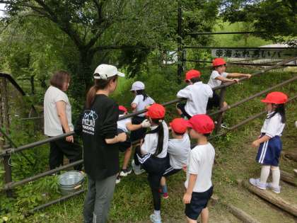 1.2年生は、校内にある梅の木から梅の実を収穫しました。今年の梅は少し小粒ですが一つの枝にぶどうのように実がついていました。担任の先生が長い棒で振り落とし、みんなで拾い集めました。まるで梅の雨が降ってくるような感じでした。今年は、短い時間でたくさん採れました。