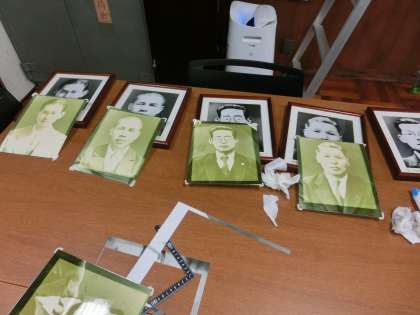 幸海小学校は今年度152年目を迎えます。校長室には歴代の校長先生の写真が飾られています。ここ数年、写真が長年の日差しの影響で色あせ、色がうすくなっていました。昨年度から少しずつ写真屋さんに依頼して修復作業をしていただきました。このほどすべての写真の修復が完了しました。43枚の歴代の校長先生の写真が歴史を感じます。