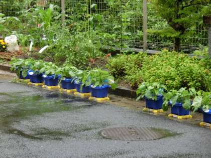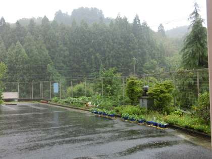 昨日に続き朝から激しい雨が降ったり止んだりの天気となっています。子どもたちが育てているアサガオや野菜は雨にうたれて気持ちよさそうにしいます。