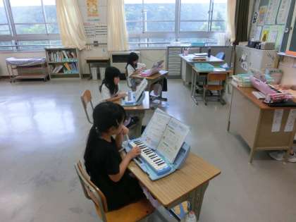 2年生の音楽は鍵盤ハーモニカを使って「かっこう」の練習をしていました。3人そろって上手に演奏をしていました。