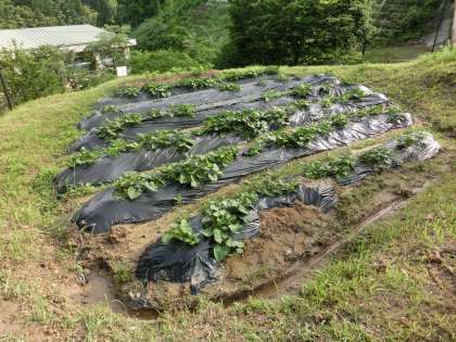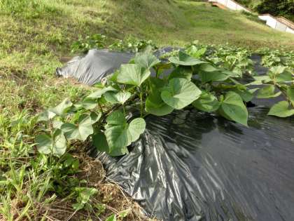 2日ぶりの晴天に恵まれ終日日差しを浴びたイモの葉は青々としていました。ツルも伸びています。