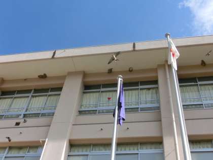 校舎の軒下に目向けるとツバメが子育て真っ最中です。ざっと数えただけでも校舎南側の軒下には6か所もツバメの巣が確認できます。また、それ以外に屋外トイレや校舎北側など数多くの巣が確認できます。