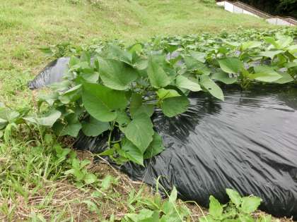 3日ぶりの公開となります。週末の雨の影響でどうなっているか少し気になりながら様子を見に行くとさらにツルが伸びていました。一緒に雑草も伸びていました。