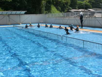 今日も絶好のプール日和でした。今日は、3・4年生に続いて5・6年生もプールで元気いっぱい水しぶきを上げていました。幸海小学校のプールはとってもきれいです。みんな気持ちよさそうに活動をしていました。