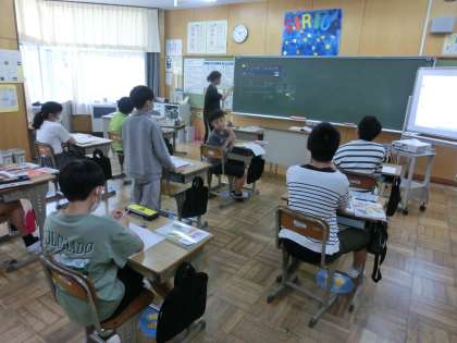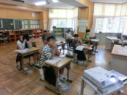 午後からの授業の様子をお伝えします。5・6年生は算数の授業です。6年生は、分数の計算、5年生は、少数の計算です。学年の内容も大切なところです。みんな一生懸命問題に取り組んでいました。