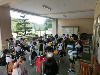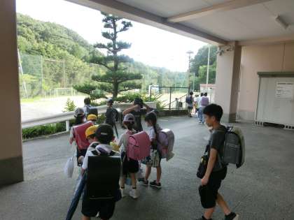 金曜日の下校時刻です。猛暑の1週間でしたが、登校してから体調を壊す子もなく週末を迎えます。来週も元気に登校してきてくださいね。