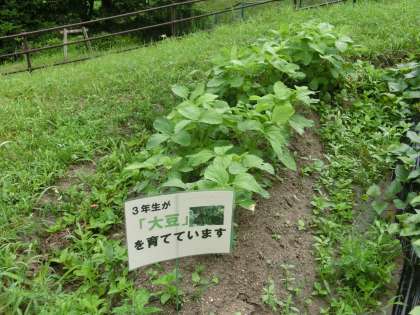 3年生の大豆の虫食いの穴が目立ちますが。大きくなっています。