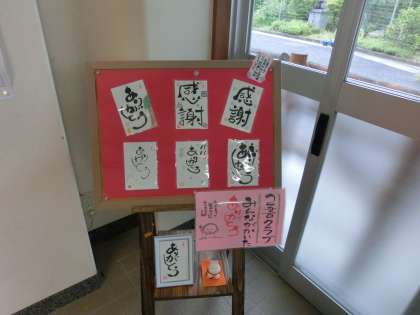 今日も子どもたちは元気に活動をしています。幸海小学校には己書クラブといものが開設されています。昨日、指導されている先生が子どもたちの作品を展示してくださいました。