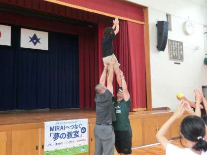 今日は、日本サッカー協会の協力による5年生対象の「夢の教室」が行われました。トヨタ自動車ラグビー部「ヴェルヴリッツの川崎太雅選手によるラグビー教室と夢の実現について講和をしていただきました。川崎選手から貴重なお話を聞くことができました。