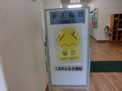 今日は、朝から雲が広がり連日の暑さが少し和らいでいます。校内の指数表示板から赤い色が消えました。