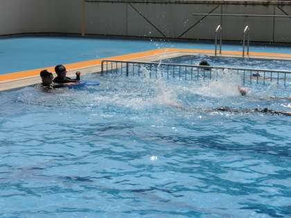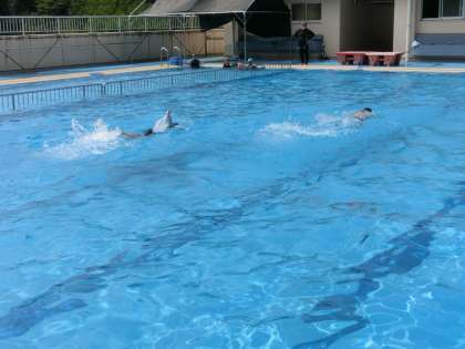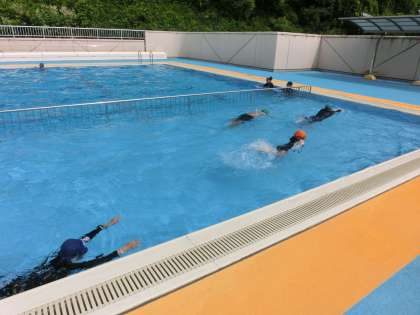 3・4年生は1時間目はプールでした。深い方のプールにも慣れ、レベルの高い子は、バタフライで25m泳いでいました。