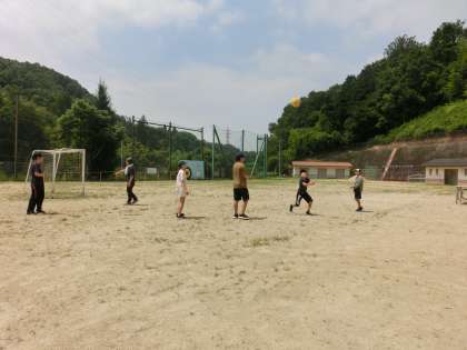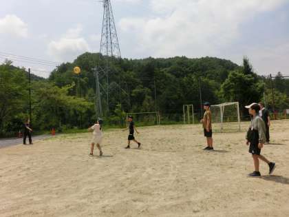 校長先生も負けずにレシーブ、トス、気持ちいい汗を流しました。