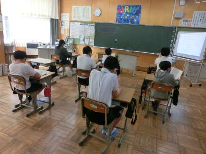 先日のニュースやテレビ番組の中で最近の小学生の読書量が増加しているという報道がありました。その原因として本校も実施ている朝の読書タイムです。1日わずか10分ですが貴重な時間です。写真は6年生の様子です。読書に夢中になっています。