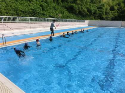 今日も厳しい暑さになっています。そのため、水泳の授業の時間を繰り上げて低学年、高学年同時に1時間目にプールでの授業を行いました。どの学年も水泳の時間が残り2時間となりました。