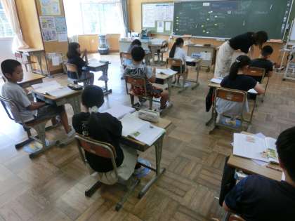 4年生の道徳は、「親切」というキーワードから親切とはどんなことこか、意見を出し合ってみんなで考えていました。