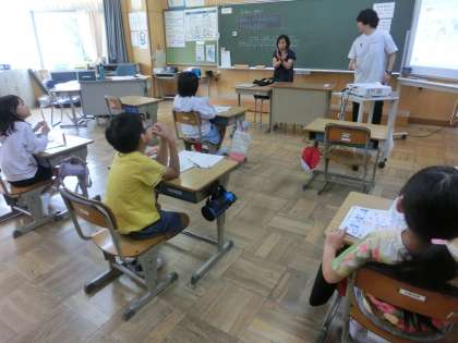 3年生の外国語活動は、英語を使って自分の好きなもの発音をする学習です。みんなに伝わるように言えたかな。