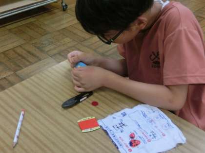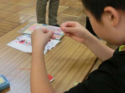 5年生は、今年から家庭科の学習が始まっています。今日は、初めてのボタン付けの練習をしていました。針に糸を通したり玉結びなど、これまで経験したことがない内容に悪戦苦闘していました。