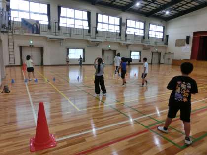 4年生も体育館でお楽しみ会です。みんなで大好きなドッジボールです。最後まで担任の先生が残り当てるまで必死でした。逃げ回って最後に当たってしますと先生はぐったりでした。