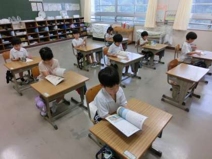 1年生は、後期に使用する新しい教科書が配付されました。後期はどんな画学習があるのかなと考えながら中身を点検しました。