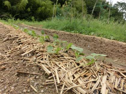 2年生が大根の種まきをしてから1週間余りが過ぎました。その間、大雨が降ったり、厳しい暑さになったりして発芽するか心配していましたが、担任の先生がお世話をしたおかげでしっかりと芽が出ていました。このまま順調に育つといいですね。