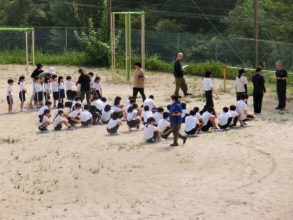 校舎なでの緊急放送を聞いての避難となりました。避難の様子は全体的に静かに素早く避難ができたようです。地震を想定しての避難訓練でしたが頭を保護する工夫が足りなかったことが反省点でした。